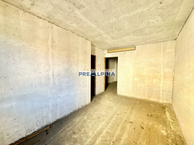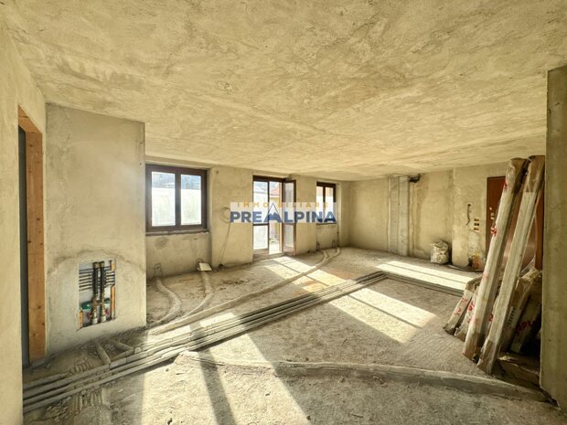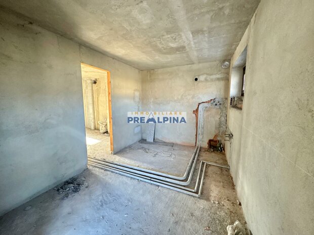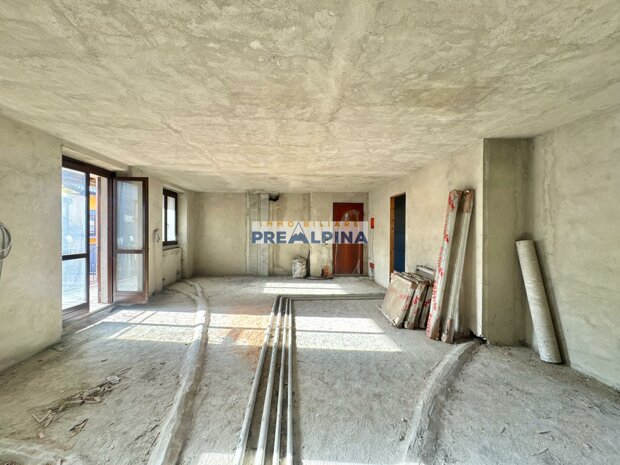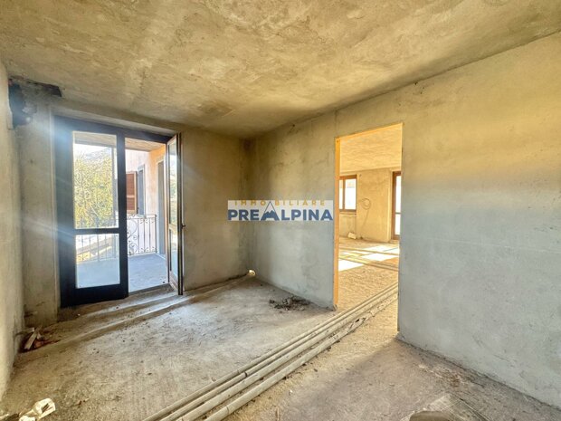 L’appartamento si presenta al rustico, offrendo così la possibilità di personalizzare completamente gli ambienti e realizzare una casa su misura. La distribuzione interna prevede: