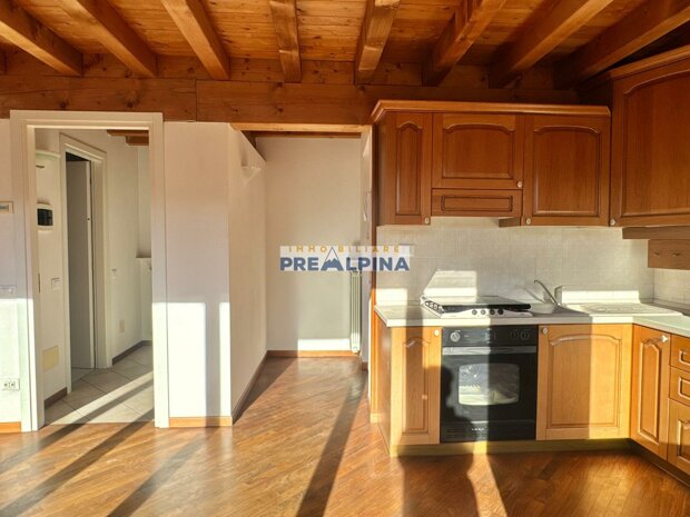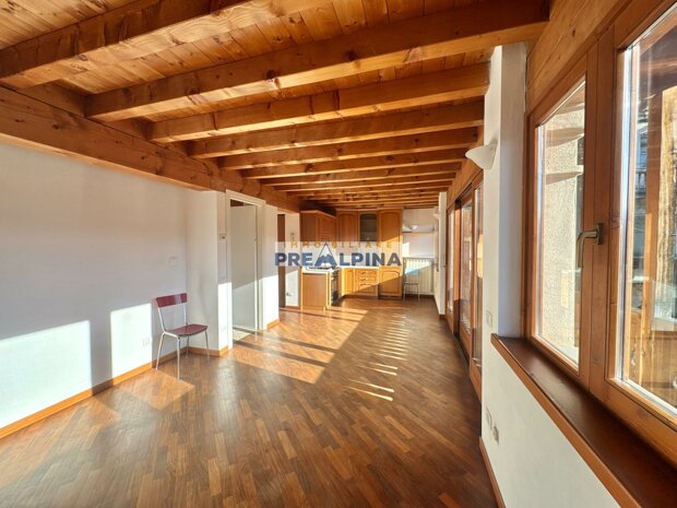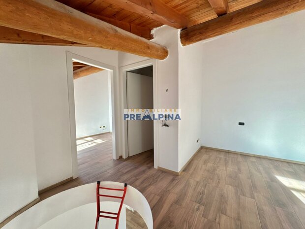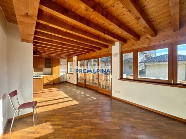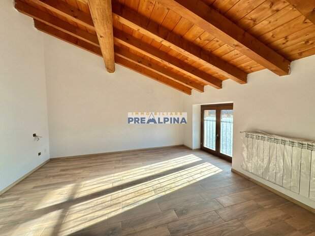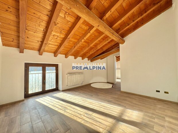 La soluzione, caratterizzata da travi a vista e parquet, si compone di: