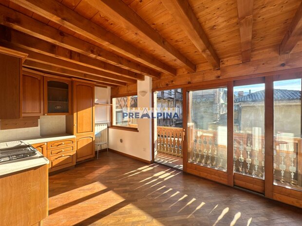 L’abitazione si sviluppa su un unico livello e gode di un’ottima indipendenza e privacy, grazie all’accesso da scala esterna. Gli spazi interni sono ben distribuiti: un soggiorno luminoso con camino a legna, zona pranzo con cucina separata, due camere matrimoniali collegate a un terrazzo soleggiato e due bagni. A completare la proprietà troviamo una porzione di sottotetto esclusivo e due posti auto.