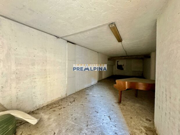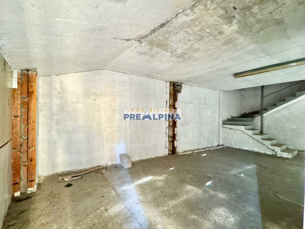 Al piano interrato troviamo uno dei punti di forza della proprietà: un box auto di circa 100 mq con altezza di 2,50 m, ideale per chi necessita di spazio per più veicoli, attrezzature o attività artigianali. Il piano terra, in buone condizioni, è attualmente suddiviso in ambienti ad uso ufficio con bagno, balcone e una stanza con accesso diretto a un cortiletto sul retro. Completa il piano un giardinetto frontale.