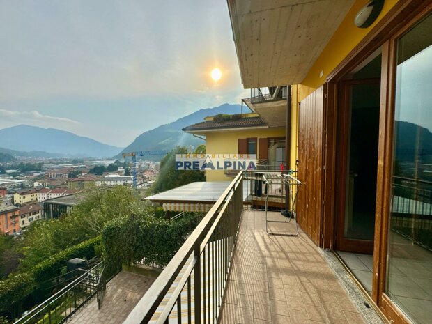 Proponiamo in vendita a Gandino un quadrilocale situato in posizione strategica, al primo piano di una palazzina ben curata di 8 unità abitative. L’ingresso si apre su un comodo disimpegno che conduce alla zona giorno composta da soggiorno e cucina separati, entrambi con accesso diretto a una splendida terrazza di circa 50 mq, vero punto di forza dell’abitazione grazie alla sua ampia metratura e all’ottima esposizione solare.