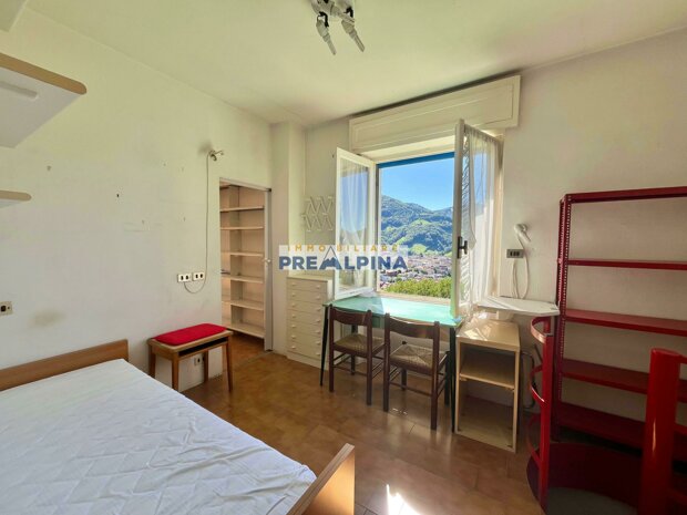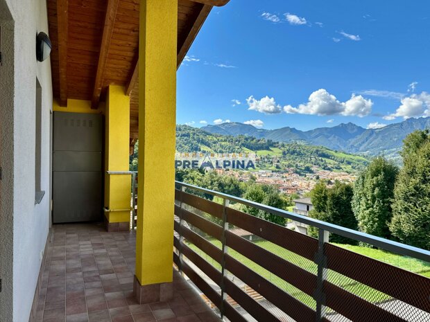 Piano primo: appartamento di grande metratura, con cucina abitabile, soggiorno con terrazzo panoramico sulla Val Gandino, tre camere da letto e due bagni.
