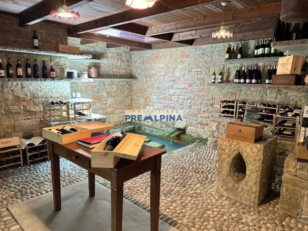 Il livello interrato è dedicato al piacere e alla funzionalità: ampia taverna con camino e forno a legna, cantina perfettamente rifinita con elementi scenografici, locali tecnici e ambienti di servizio tra cui uno spazio adibito a caveau. Non mancano garage e un generoso magazzino.