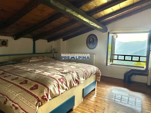 Lo sguardo si perde nella bellezza della valle del Lujo e nei panorami che si aprono verso Albino. Un solo bagno, al momento, rappresenta l’unico limite della casa, ma vi è la possibilità concreta di realizzarne un secondo al piano terra.