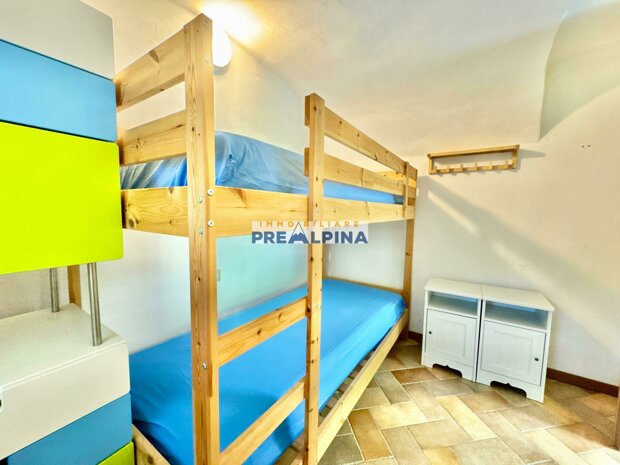 L’immobile in vendita è una porzione di baita, ma completamente autonoma e indipendente per accessi, impianti e spazi. Pur trattandosi tecnicamente di una bifamiliare, la struttura è divisa in modo tale da garantire totale riservatezza: sul posto non si percepisce affatto che si tratta di una porzione. Il vicino è presente molto raramente e la privacy è assoluta.