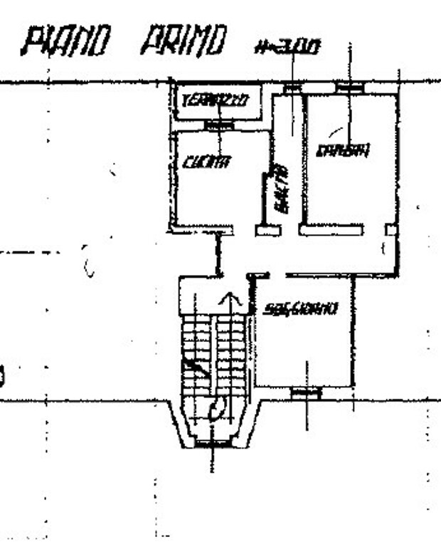 Piano primo: due grandi stanze, un bagno, loggia coperta e terrazza di circa 30 mq.